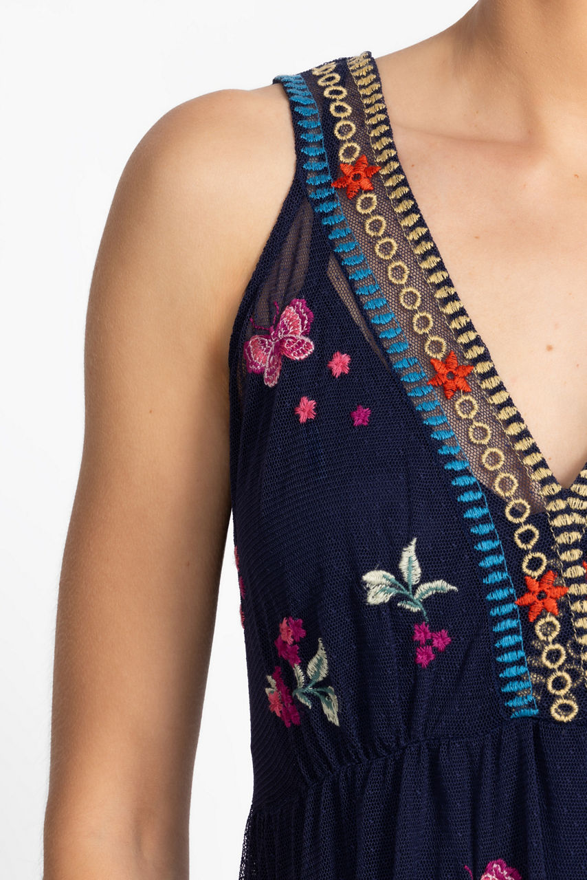 Crafted from light and airy mesh fabric, the Zinoviah Mesh Dress is embellished with intricate floral embroidered details. Featuring a V-neckline and gathers throughout, this sleeveless slip-lined dress is defined by a classic empire waist. Pair with a denim jacket and wedge heels for a casual brunch date.