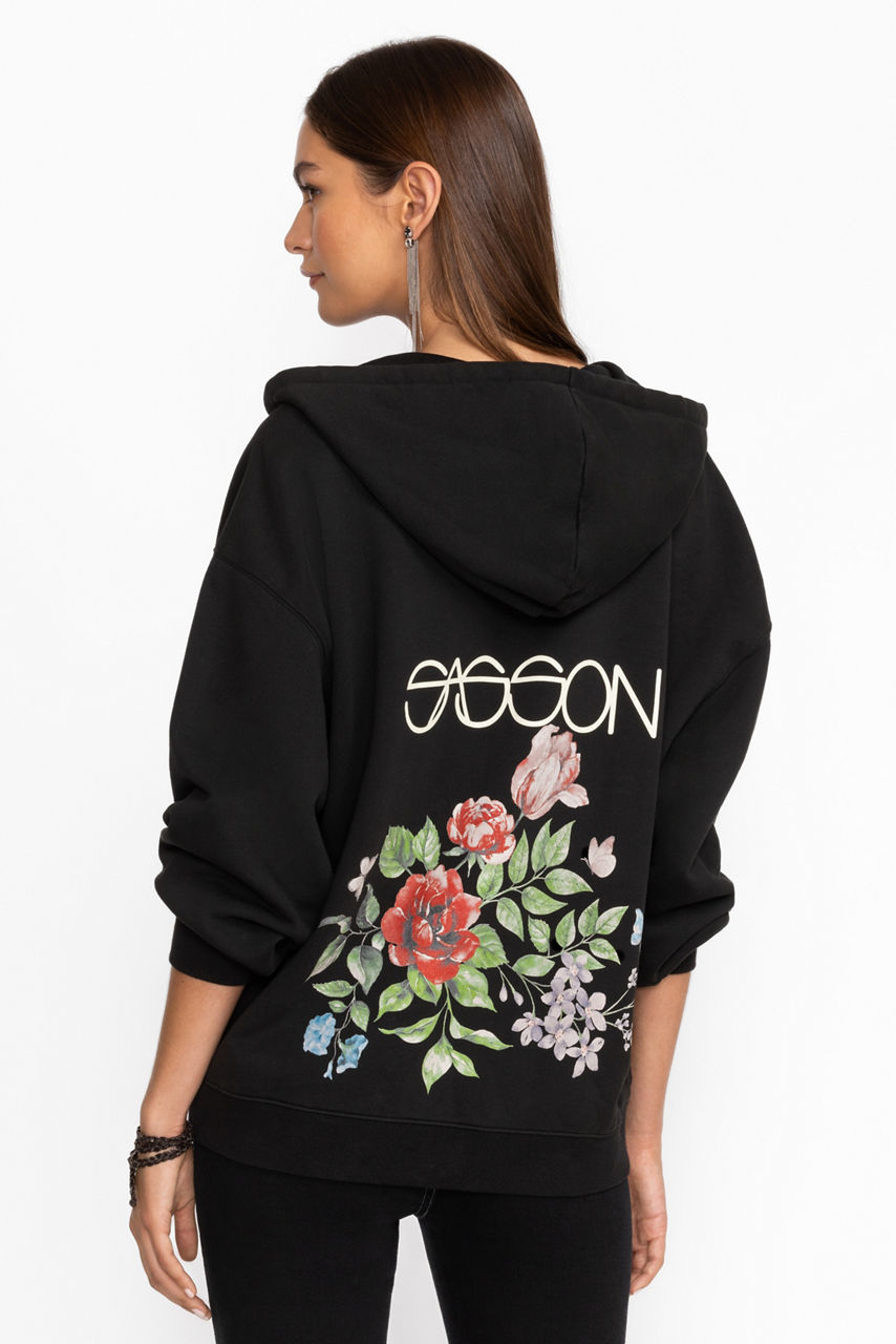 Adorned with the nostalgic Sasson logo and graphic on the back, this Zip Up Hoodie is made from a comfortable cotton-spandex blend that makes for the perfect year-round casual layering piece. Pair it with the matching lounge pants and trendy sneakers for a casual athleisure look.