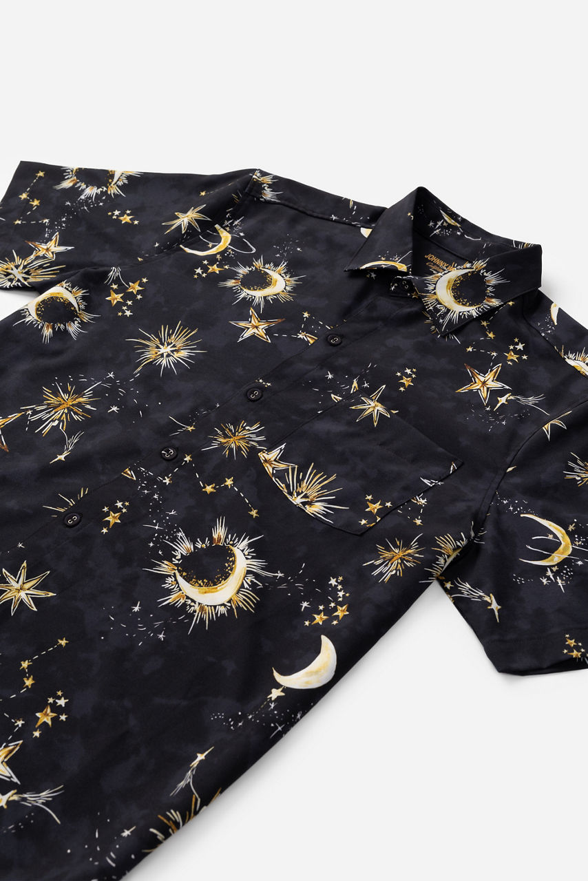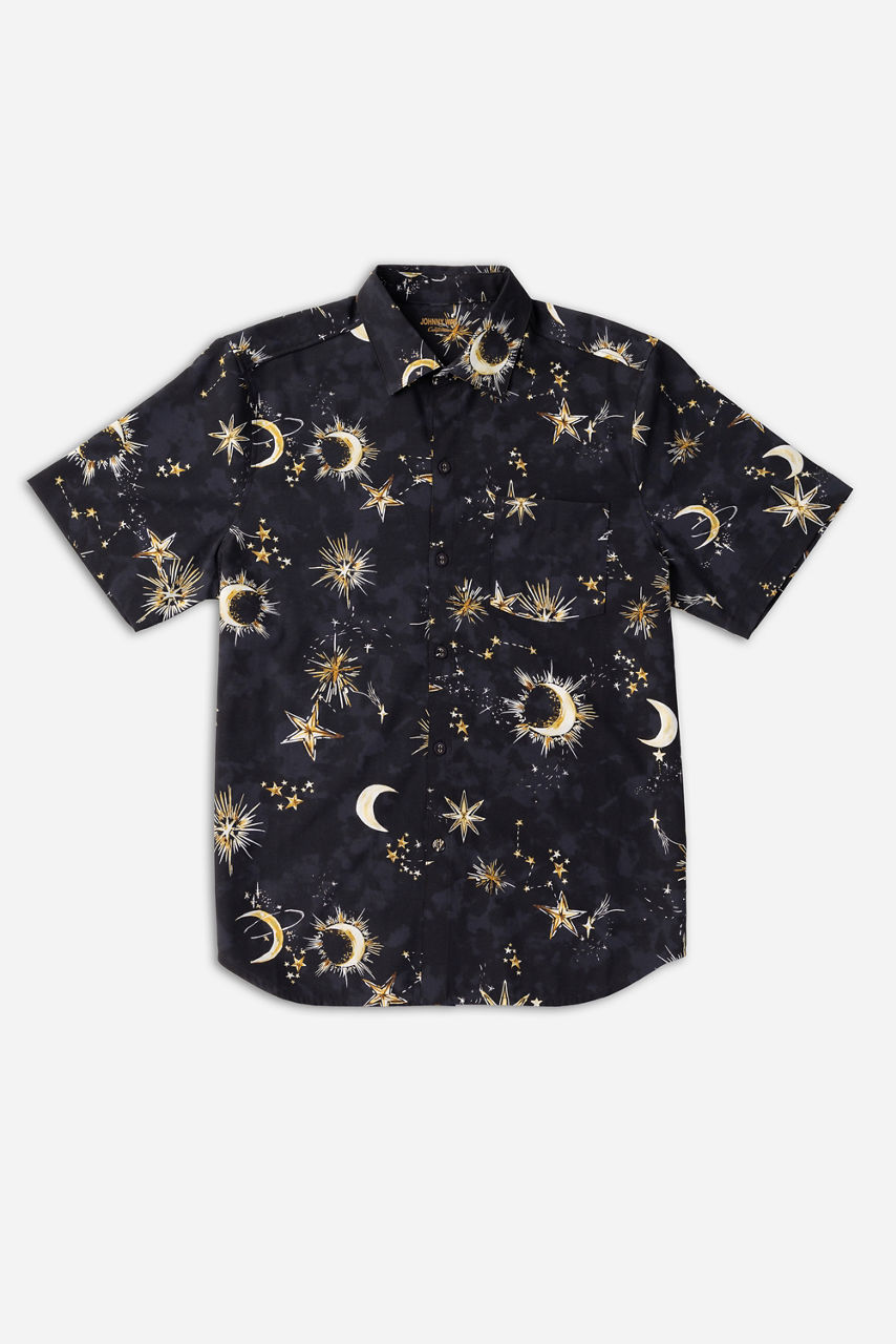 The Zolita Mens Coverup Shirt is a versatile and stylish option, featuring a traditional collared button-front. This breezy shirt is embellished with a celestial print for an eye-catching look. Style it with with the matching Mens Swim Trunks.