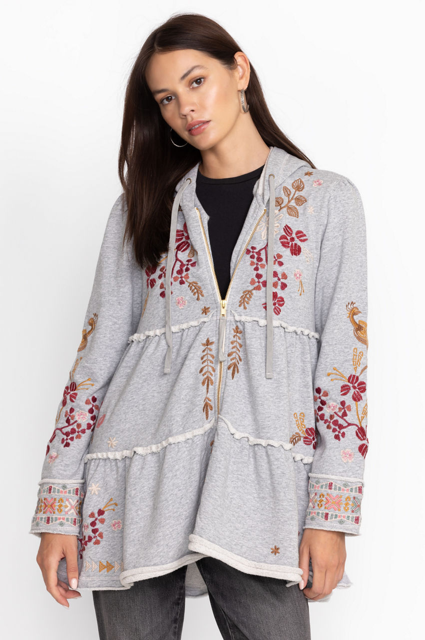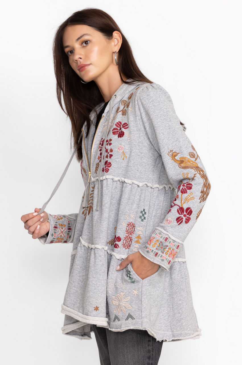 Crafted from pure cotton, the Zuzu Tiered Hoodie unexpectedly revamps a downtime hero with fanciful details. This hoodie features a zipper front, long sleeves, pockets at the sides, a tiered construction, and a colorful floral placement embroidery. Wear this hoodie with a tee and jeans for a causal yet upbeat wear-anywhere look.